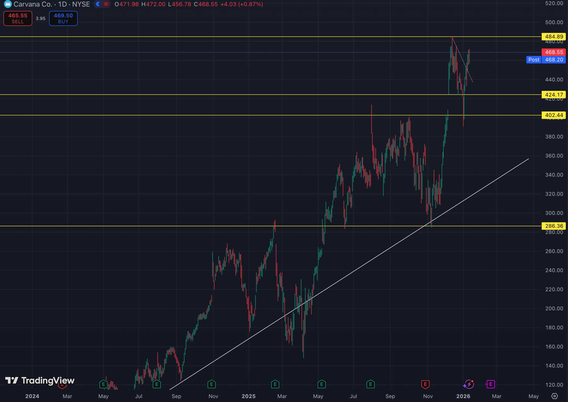 Same idea as yesterday. Still need to clear 475 to see 500. The stock was moving to slow today to see any real push.