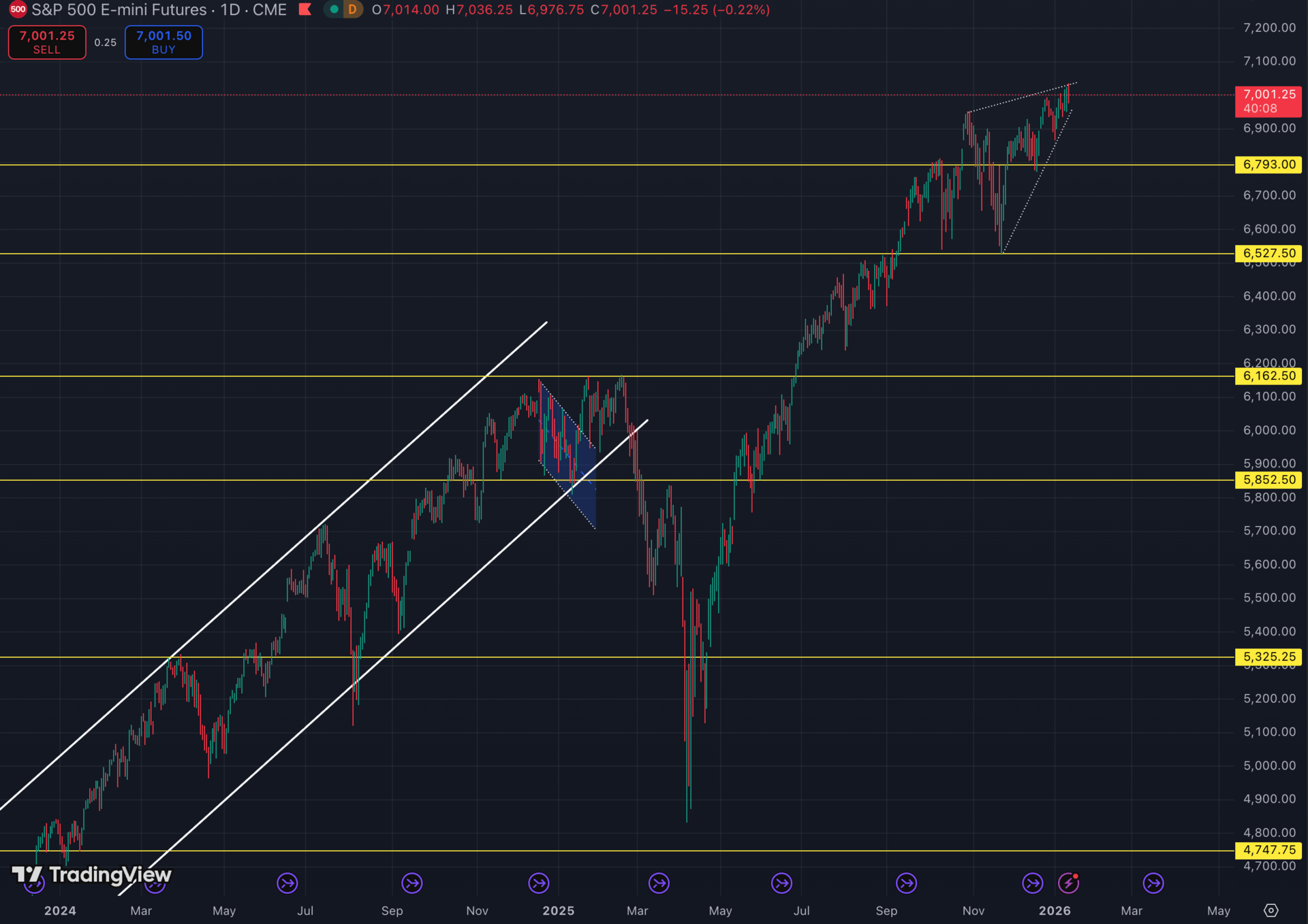 The consolidation at all time highs remains intact. I’ll wait for this flag to resolve with volume before really loading the boat.