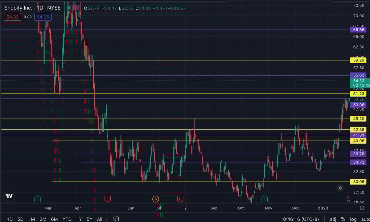 Below is the daily chart for SHOP with the final bar on February 1, 2023: